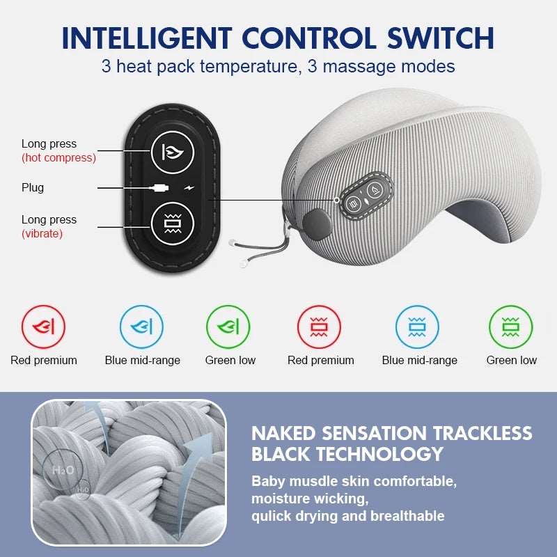 Experience ultimate comfort with our Memory Foam Heated Neck Pillow. This multifunctional travel pillow features 5-second rebound memory foam, breathable fabric, and a rechargeable battery for on-the-go relaxation. Enjoy three massage modes and adjustable hot compress temperature for a soothing journey.